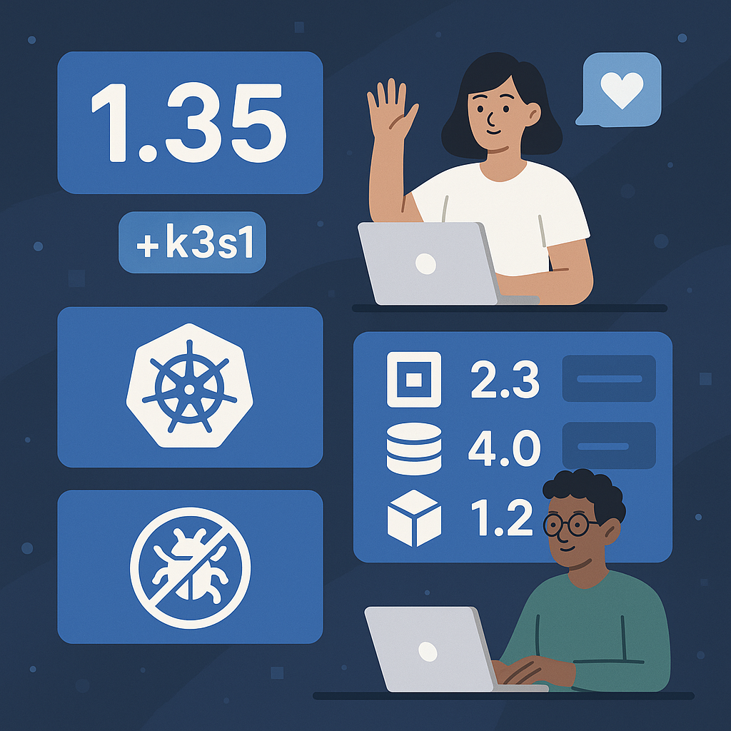 k3s v1.35.0+k3s1 is out now. This release includes an update to Kubernetes v1.35.0 and various bug fixes, enhancing the overall stability and performance for users.